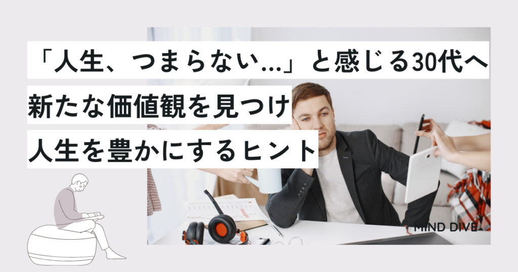 皆さんは、「人生がつまらない」と感じたことはありますか?特に30代になると、日常のルーチン化や夢中になれるものの欠如、自己投資の時間が足りないなど、さまざまな要因でこのような思いを抱く方が多いようです。この記事では、そう感じてしまう原因と、 -